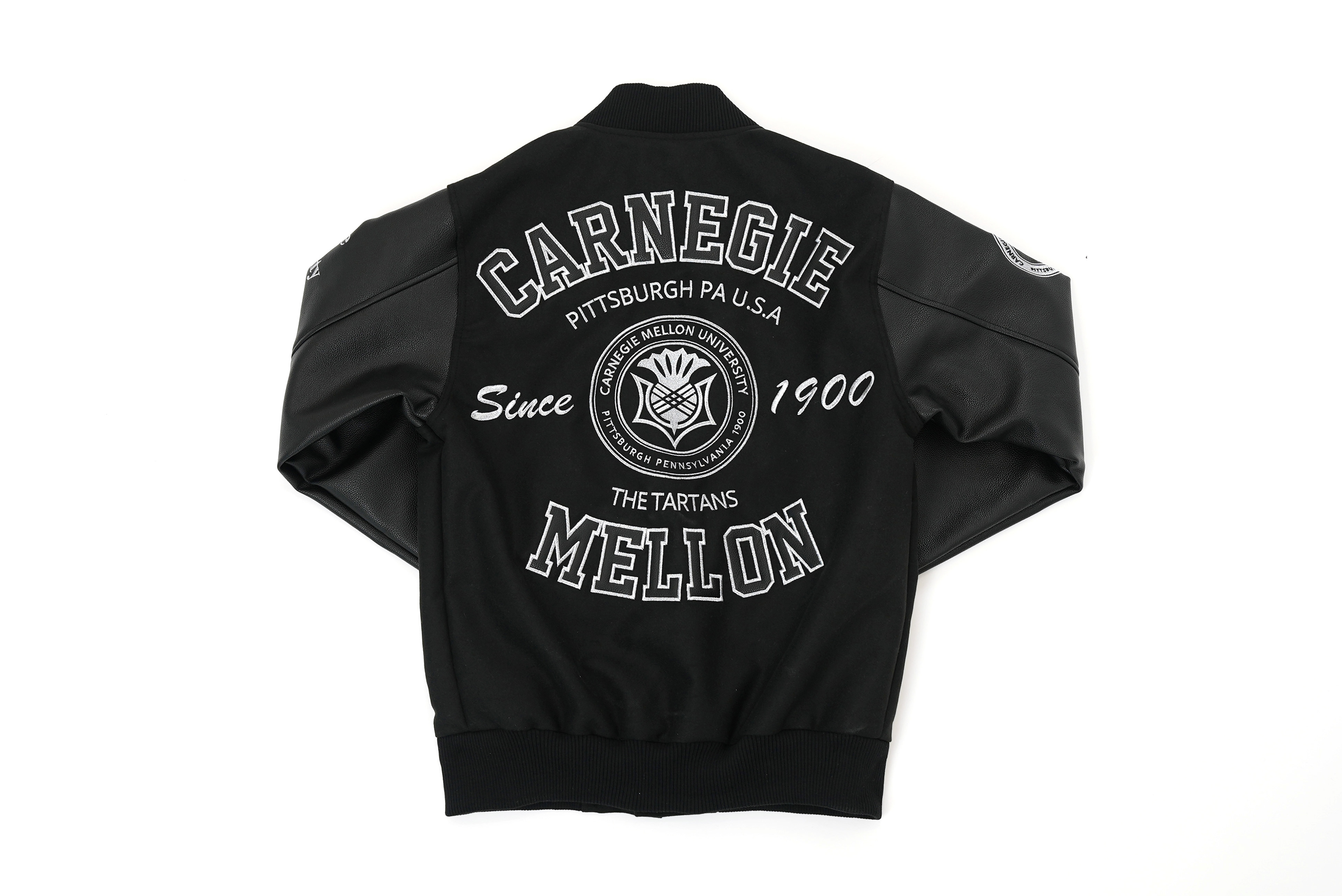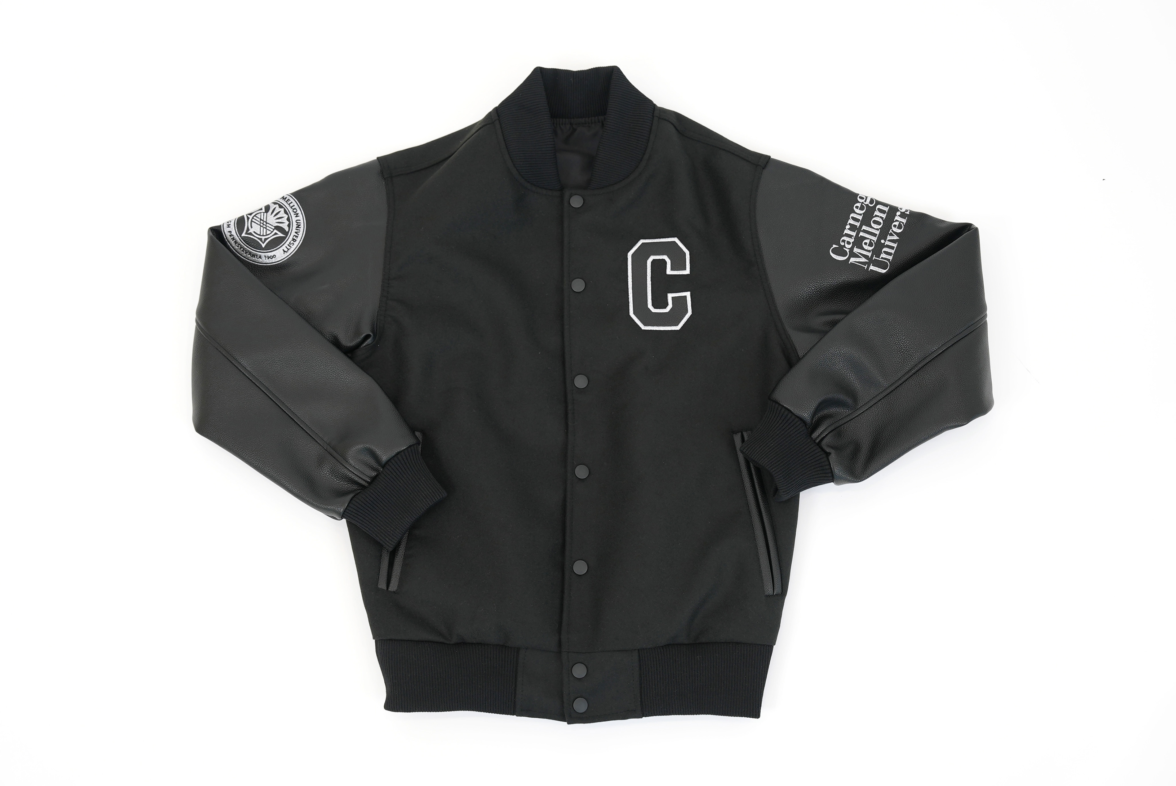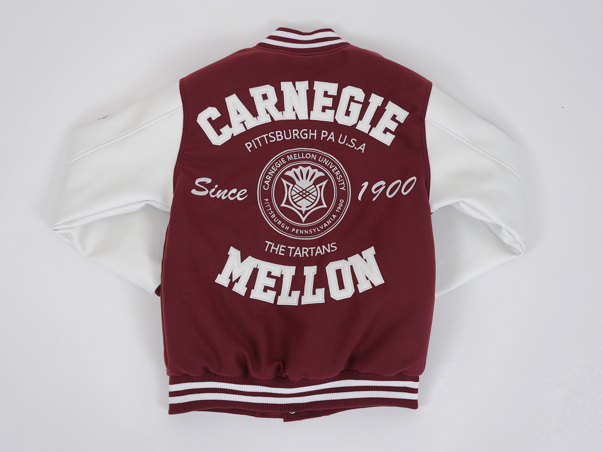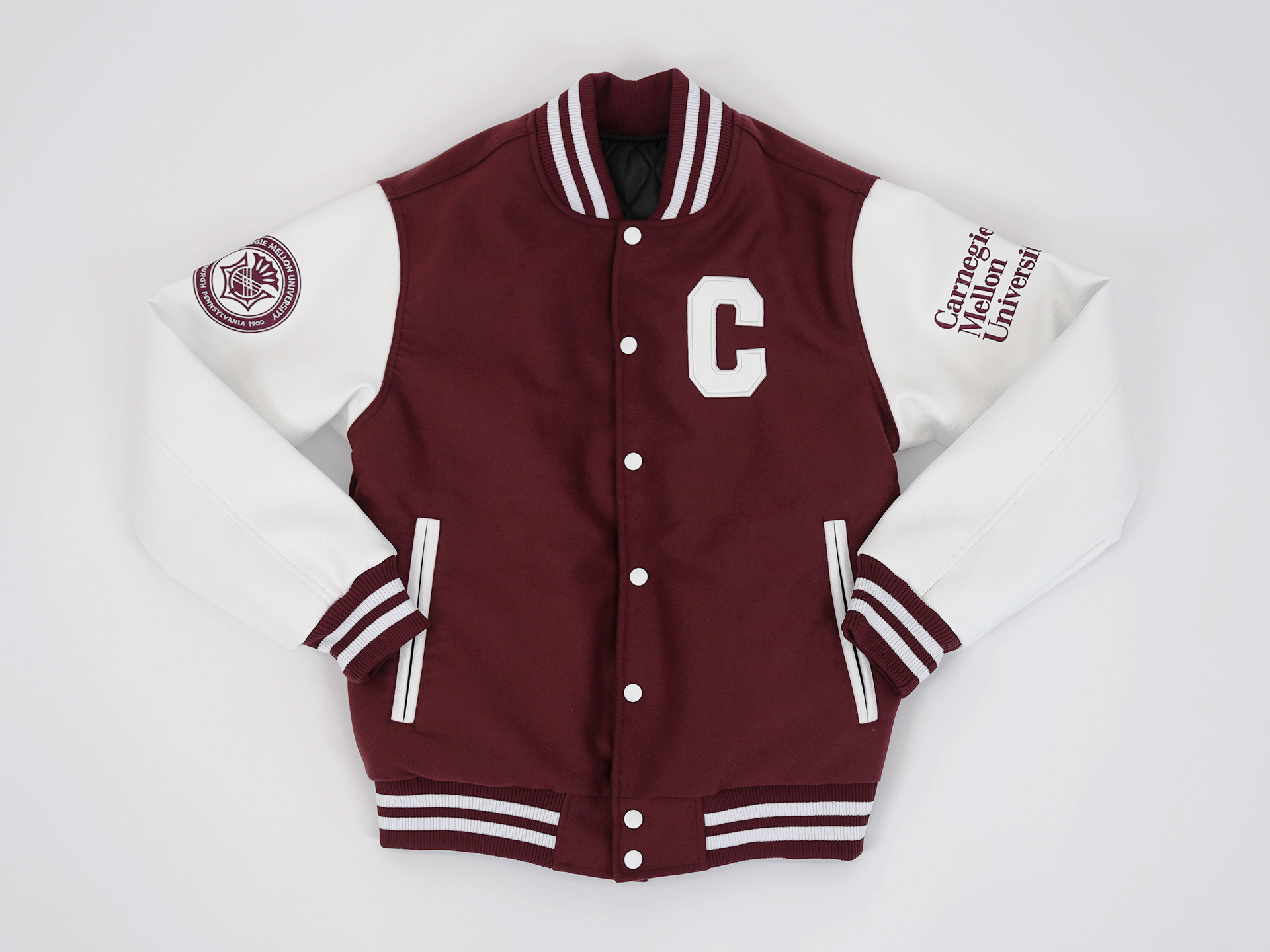 Varsity jacket design for official Carnegie Mellon University merchandise.
