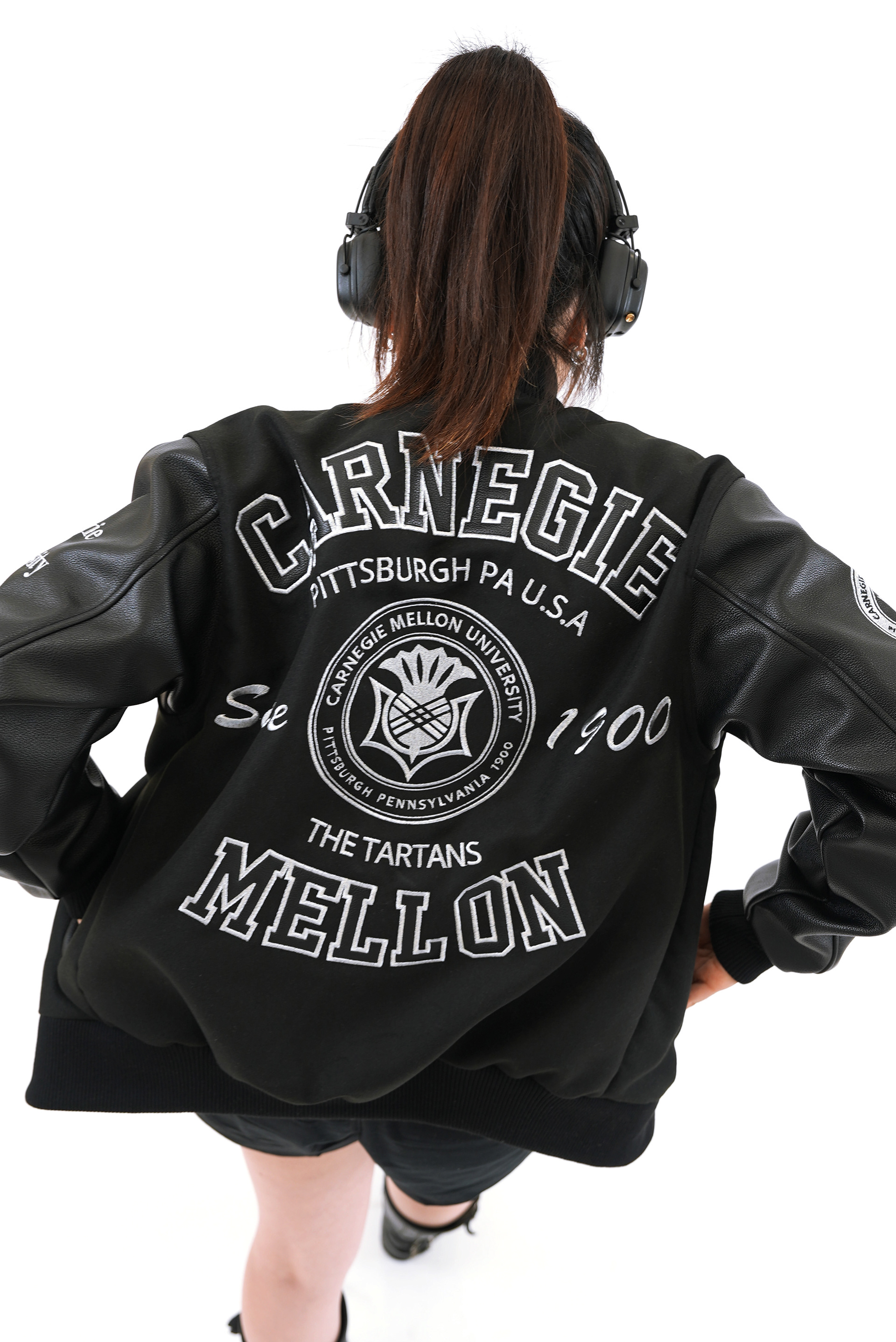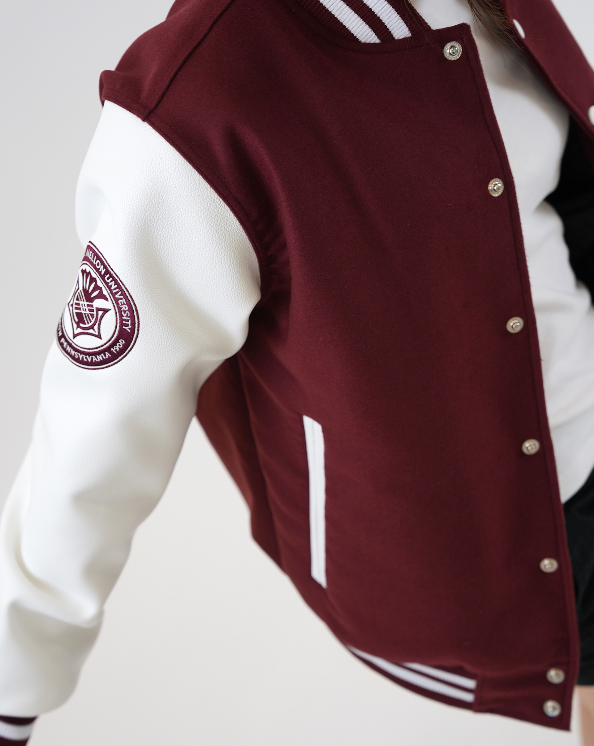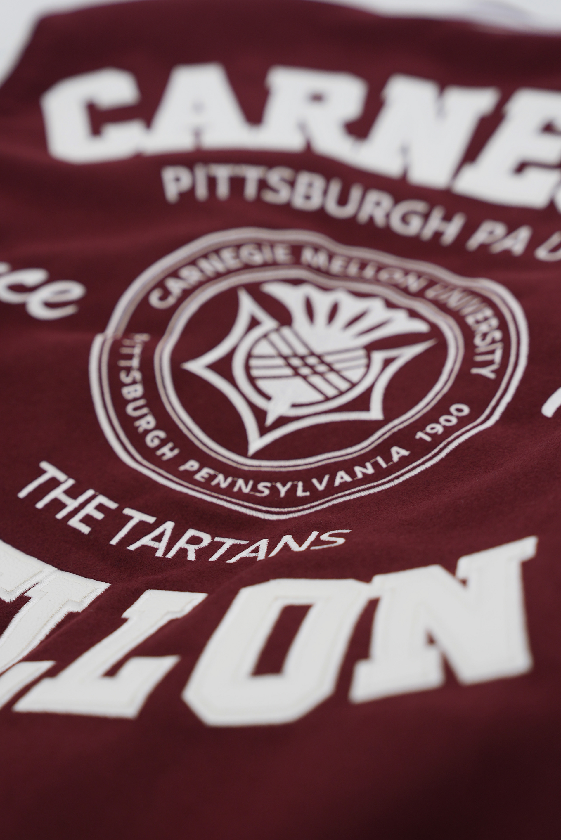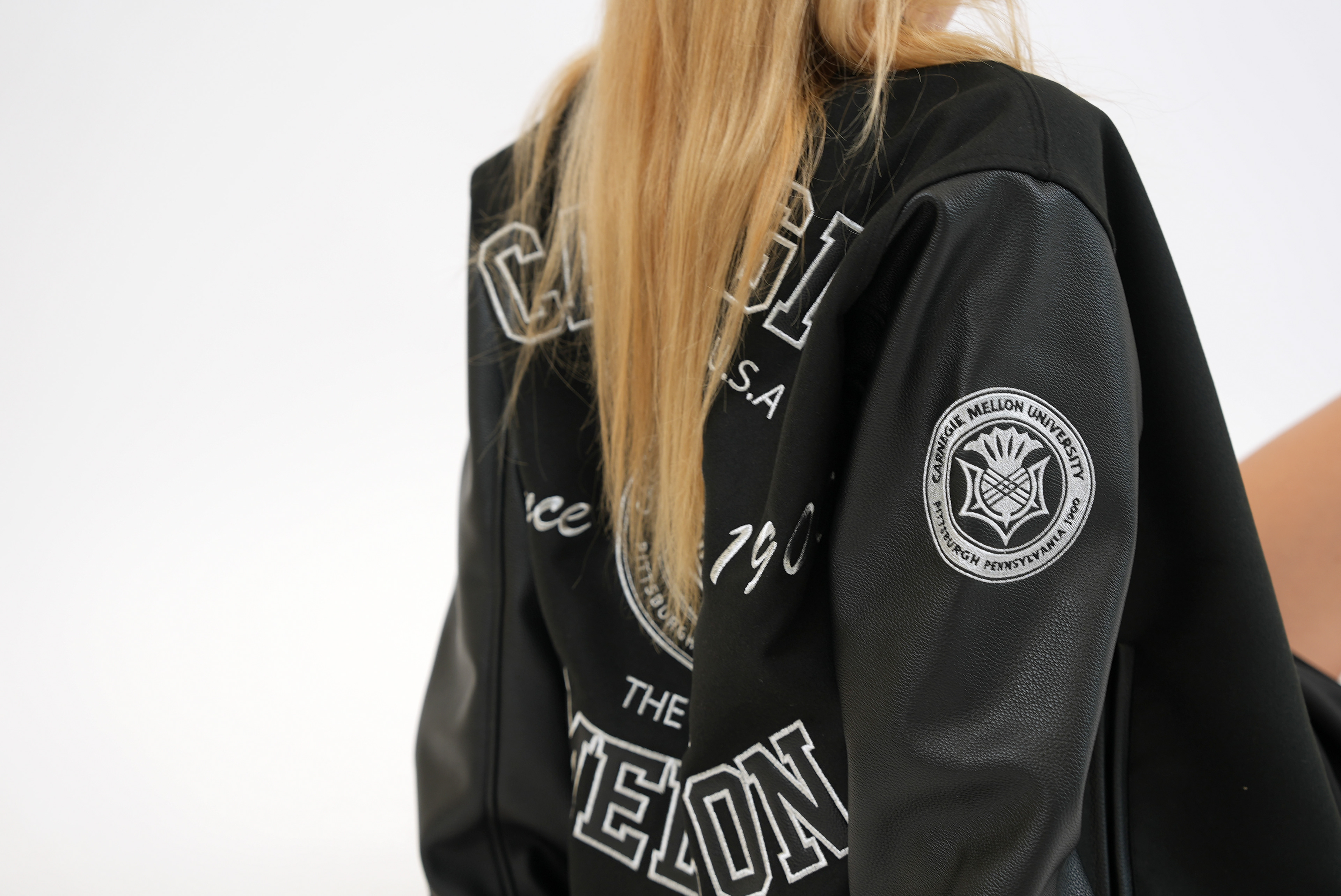 Varsity jacket design for official Carnegie Mellon University merchandise.