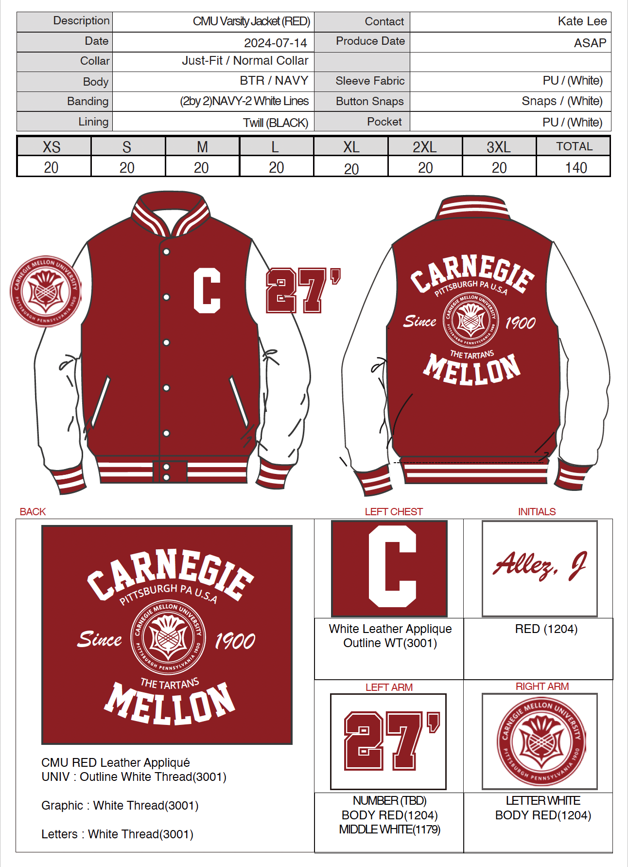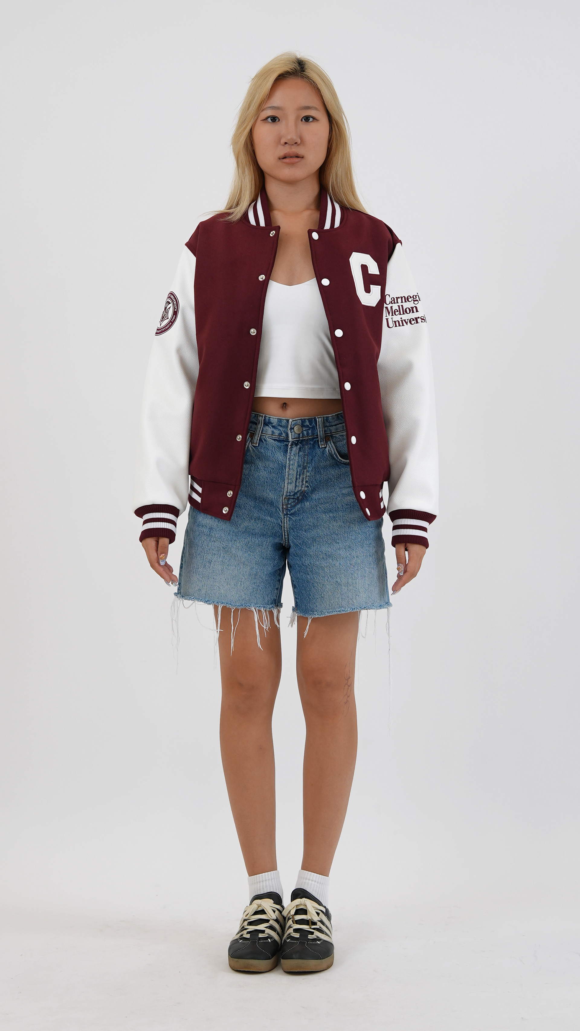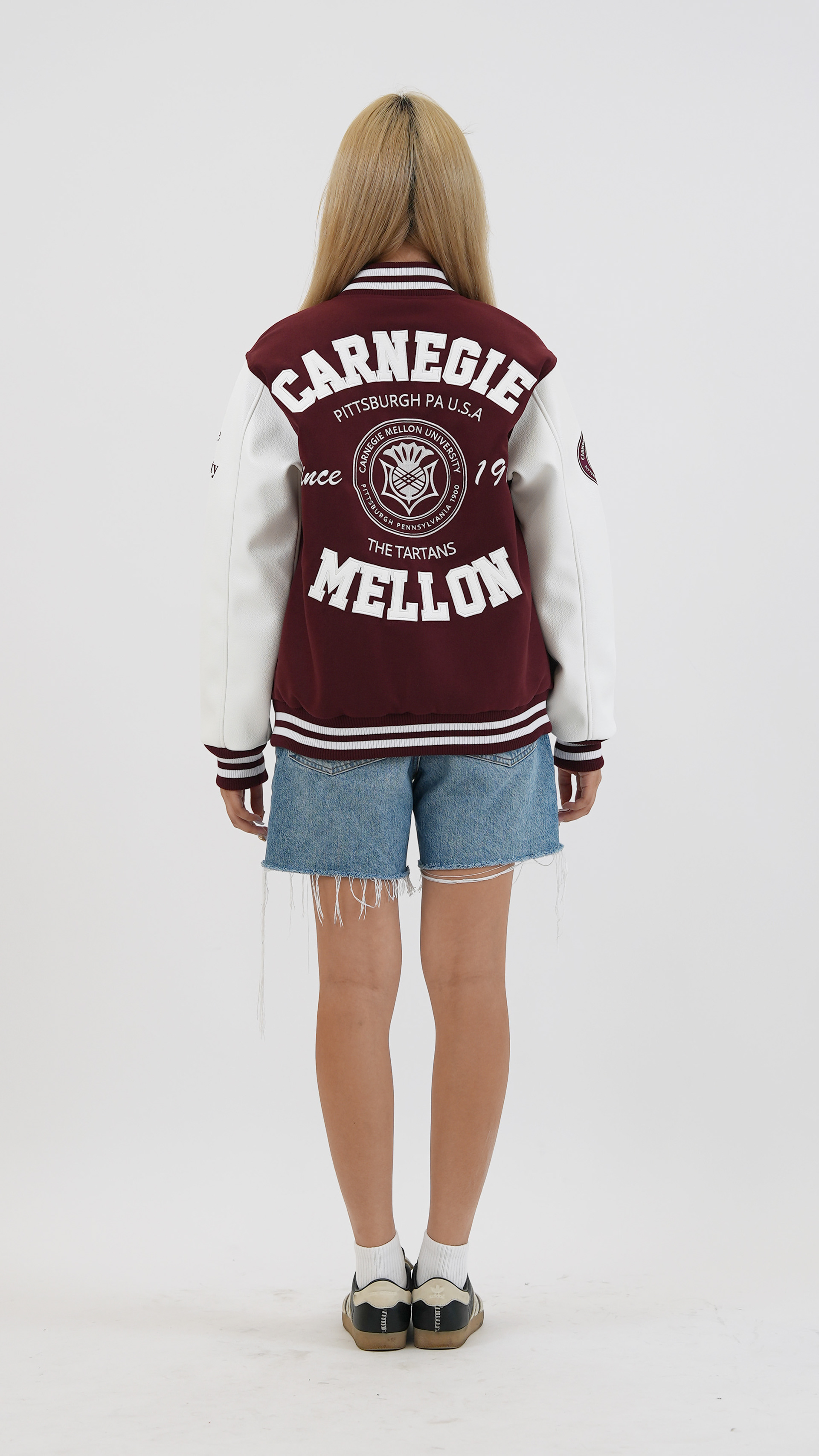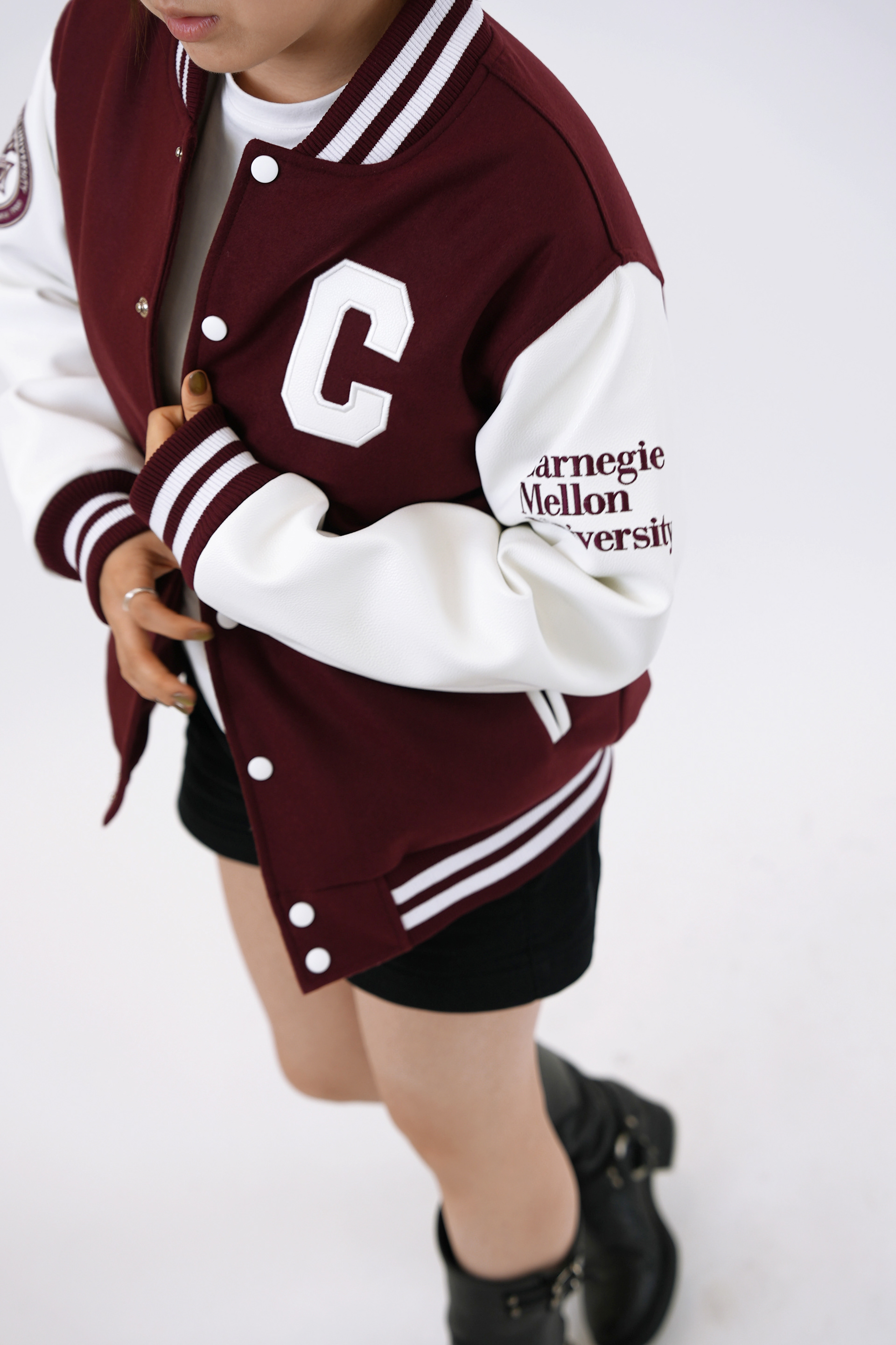 Varsity jacket design for official Carnegie Mellon University merchandise.