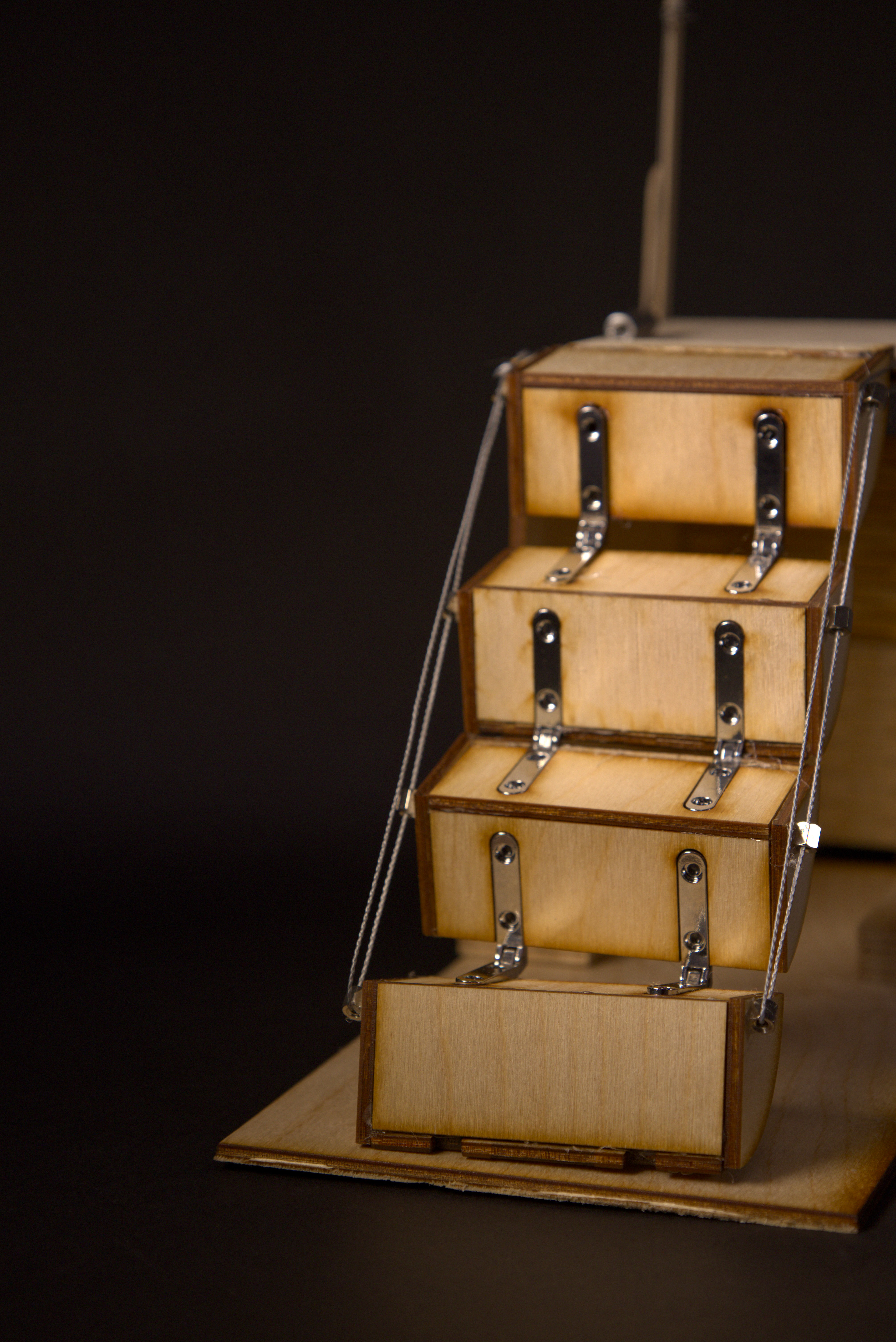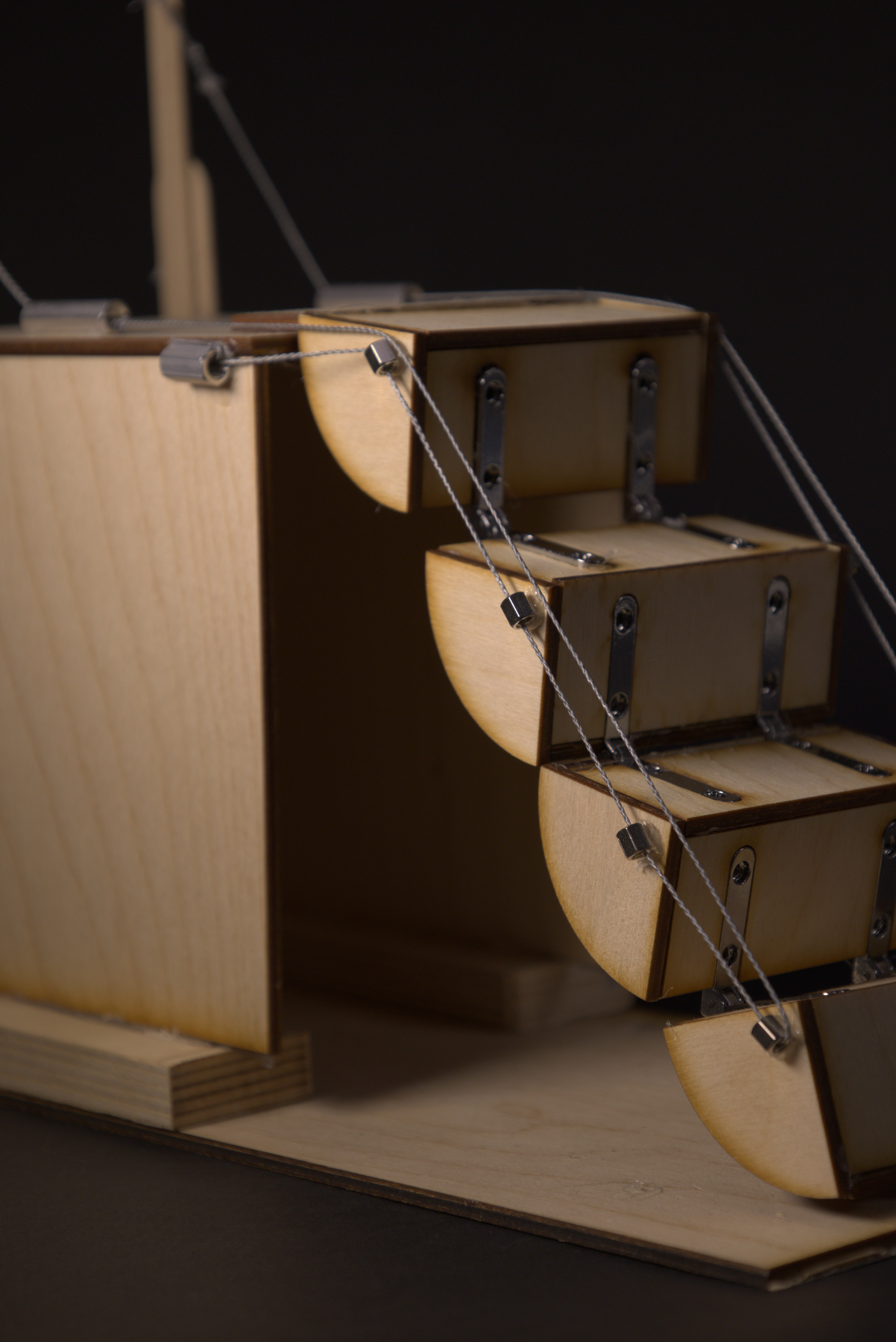 Prototyping concept of safety gate stair structure responsive to human presence reconfiguring to allow/prevent treveling up or down the stairs.